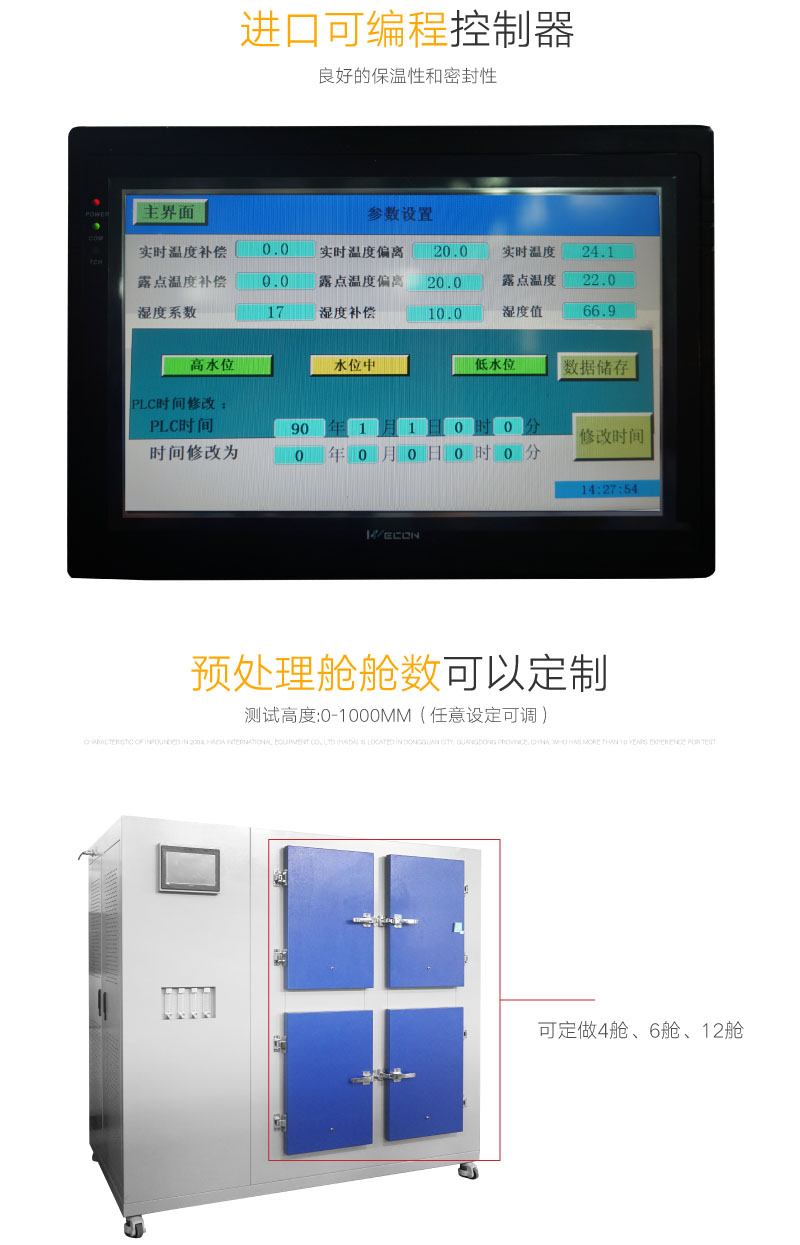 甲醛釋放量預處理倉為本公(gōng)司針對GB18580—2017、GB17657—2013標準中板材(cái)試樣的15天預處理要求專(zhuān)門生產的試驗設備,本設備具備一台設備有一個或者多個獨(dú)立的(de)處理艙,可以同(tóng)時對(duì)不同的多(duō)個樣品進行試件平(píng)衡預處理,(環境艙的數量可(kě)以根據場地和客戶需要進行定製),測試艙的數量有4艙、6艙、12艙四種標準(zhǔn)機型,大大提高了試驗效率。