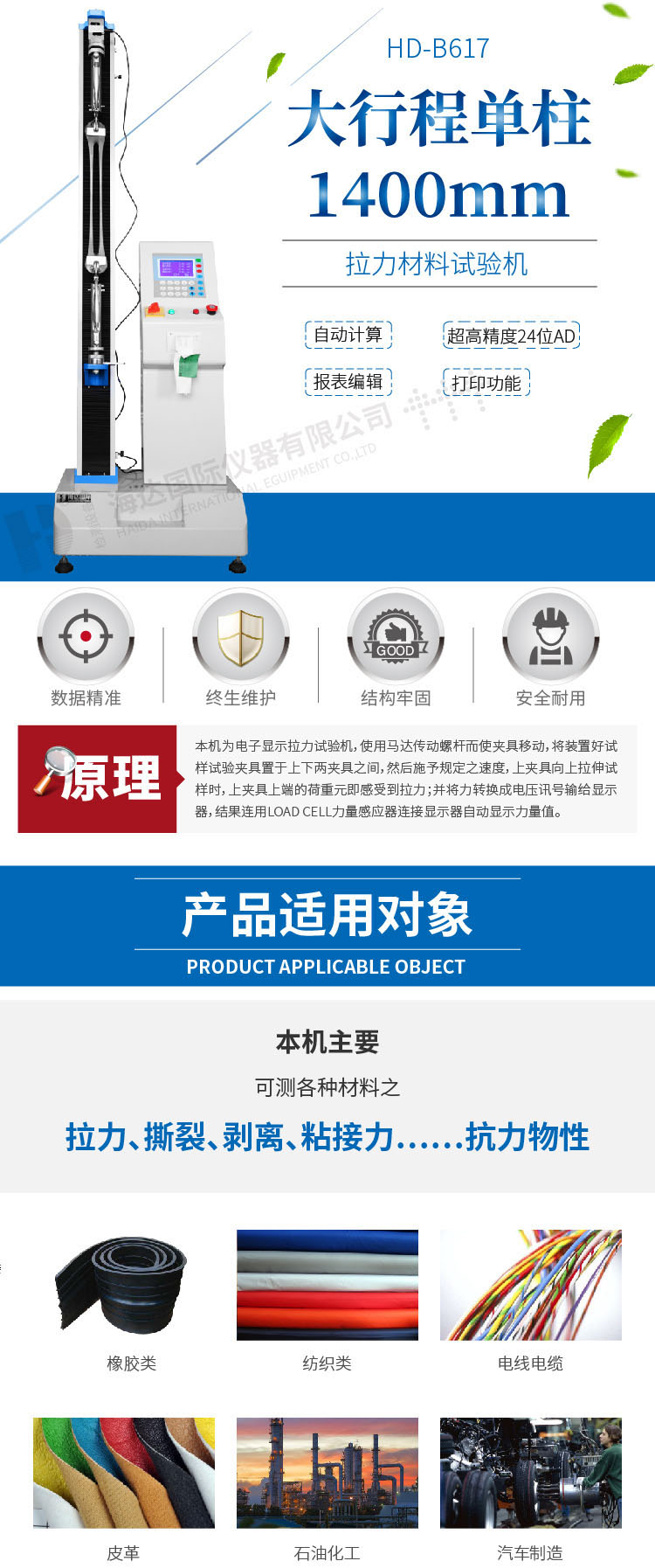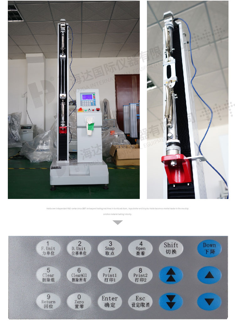 線材端(duān)子拉力試驗機HD-B617測試各種材料、半成品及成品的抗拉強度、抗壓強度及伸長量,可做剝離、撕裂、抗彎、抗折、壓縮等試驗,適合金屬、塑料、橡膠、紡織品、合成化學製品(pǐn)、電線(xiàn)電纜(lǎn)、皮革等行業(yè)使用 設計標準:GB/T 16491、GB/T 1040、GB/T 8808、GB/T 13022、GB/T 2790、GB/T 2791、GB/T 2792、GB/T 16825、GB/T 17200、GB/T 3923.1、GB/T 528、GB/T 2611、GB/T 6344、GB/T 20310、GB/T 3690、GB/T 4944、GB/T 3686、GB/T 529、GB/T 6344、GB/T 10654、HG/T 2580、JC/T 777、QB/T 2171、HG/T 2538、CNS 11888、JIS K6854、PSTC-7、ISO 37、AS 1180.2、BS EN 1979、BS EN ISO 1421、BS EN ISO 1798、BS EN ISO 9163、DIN EN ISO 1798、GOST 18299、DIN 53357、ISO 2285、ISO 34-1、ISO 34-2、BS 903、BS 5131、DIN EN 12803、DIN EN 12995、DIN53507-A、DIN53339、ASTM D3574、ASTM D6644、ASTM D5035、ASTM D2061、ASTM D1445、ASTM D2290、ASTM D412、ASTM D3759/D3759M | ||