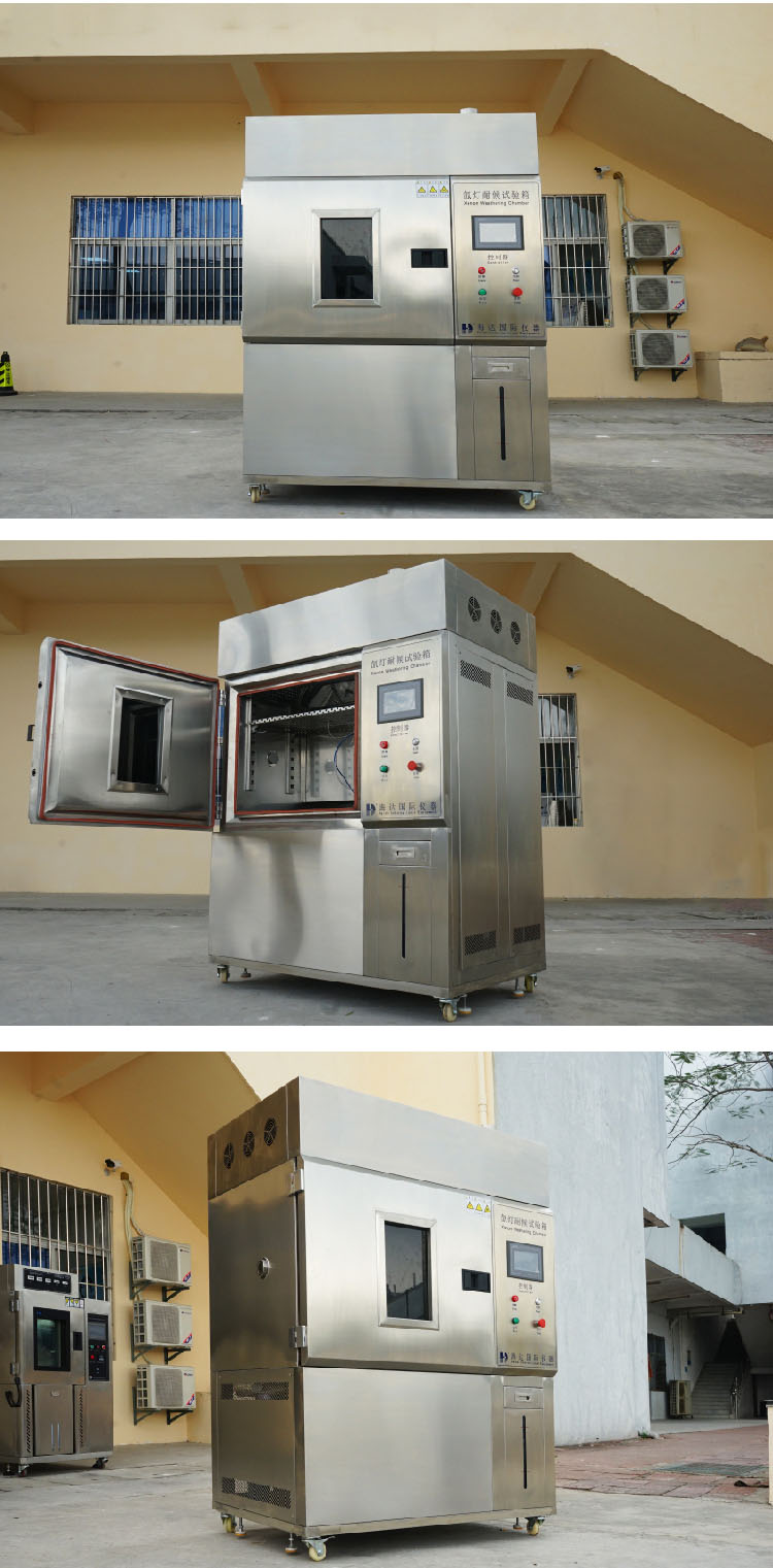 氙燈耐候試驗箱采用氙弧燈(dēng),可模擬全太陽光譜且存在於不同環(huán)境(jìng)下的破壞性光(guāng)波。此設備能提供相(xiàng)應的環境模擬和加速試驗,專門用於科研,產品(pǐn)開發和產品質量管控等等。是通過材料試樣(yàng)暴露在(zài)氙弧(hú)燈的光照及熱輻射下進(jìn)行老化試驗.來(lái)評價在高溫光源作用下某些材料的耐光、耐候性能.主要用於汽車、塗(tú)料、橡膠、塑料、顏料、粘合(hé)劑(jì)、織(zhī)物等。